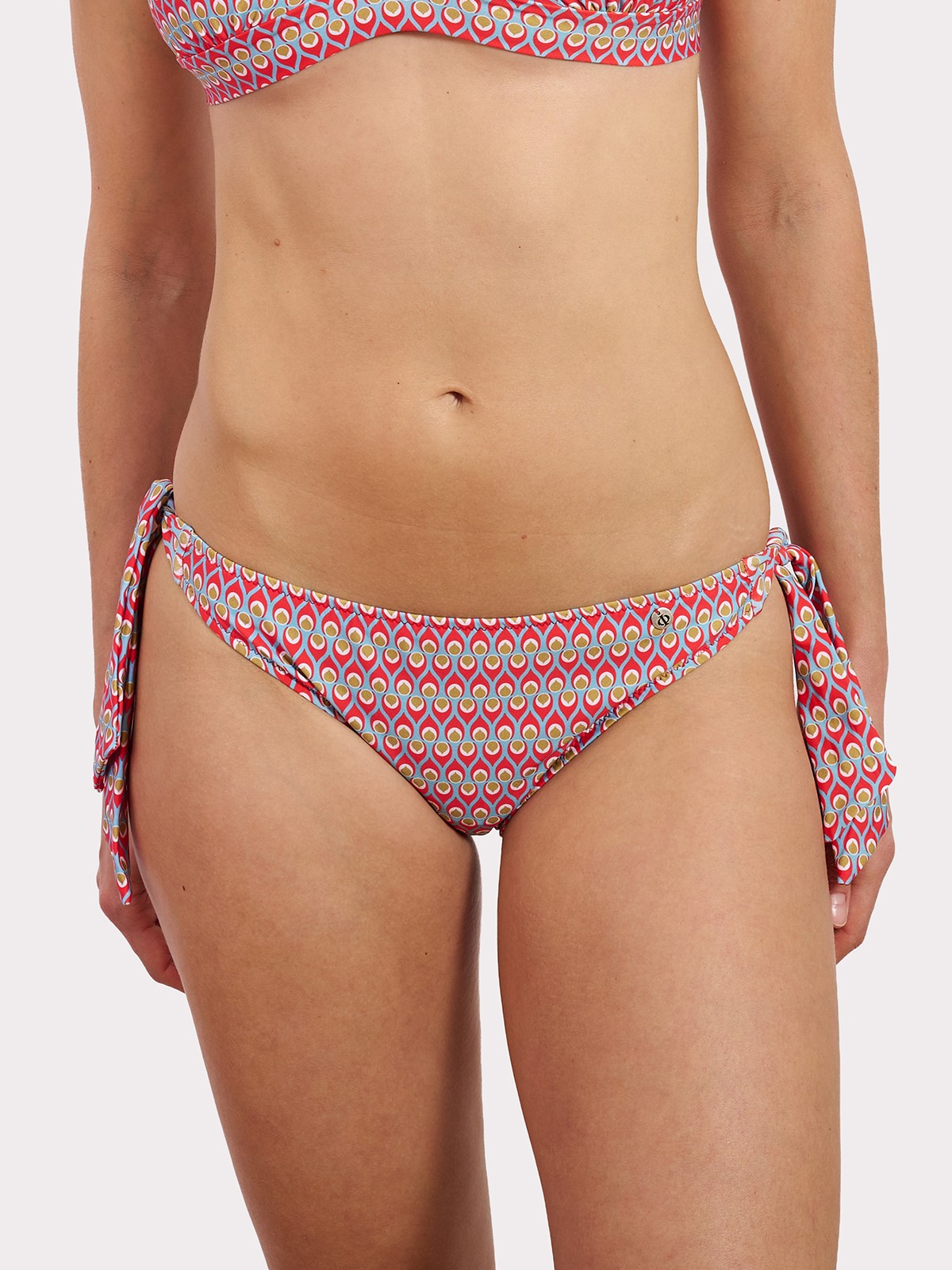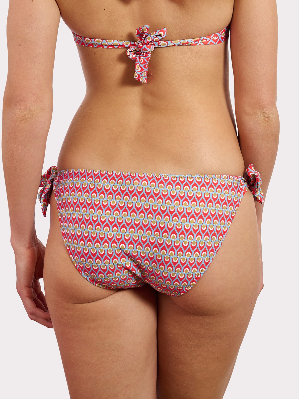 Braguita media con lazos corbateros a los lados que te permiten no sólo regular a la medida que más te guste sino también personalizar tu bikini atando con un simple nudo, haciendo un bonito lazo...pero manteniendo siempre tu estilo. Estampado multicolor elegante y delicado combinado con forro rosa empolvado.
